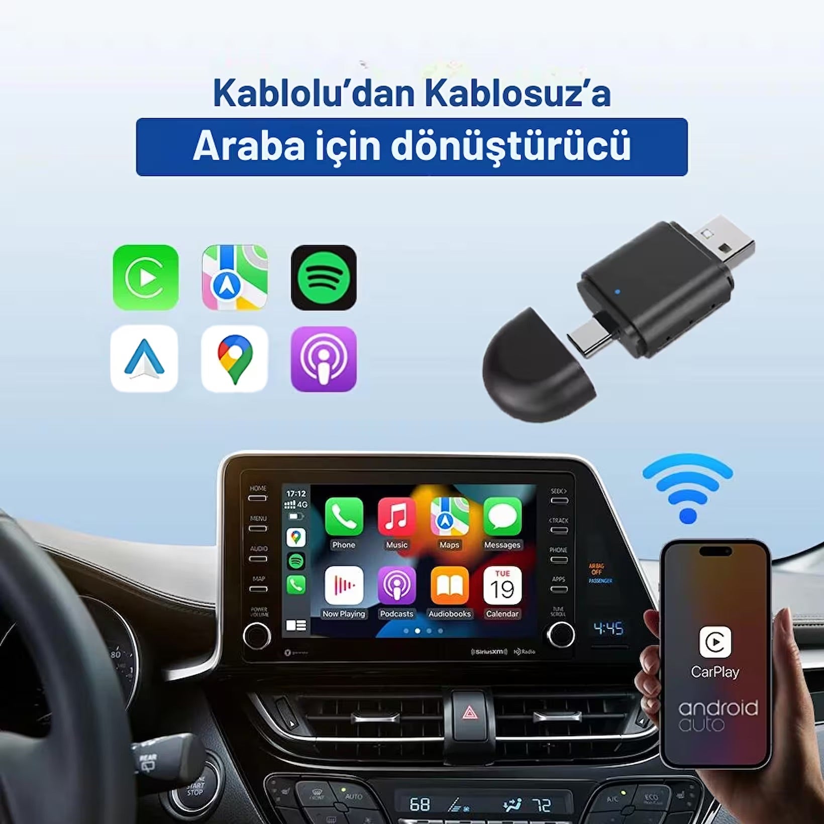 Wireless CarPlay and Android Auto Support: You can use your wired CarPlay vehicles wirelessly with this adapter. You can add CarPlay and Android Auto features to your vehicle without cable clutter. Experience the freedom of wireless connection!